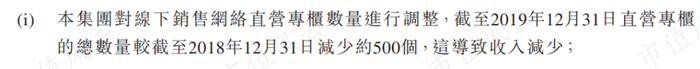最主要的原因就是2019年全年的专柜数量比上一年净减少500个,从而导致盈利锐减。