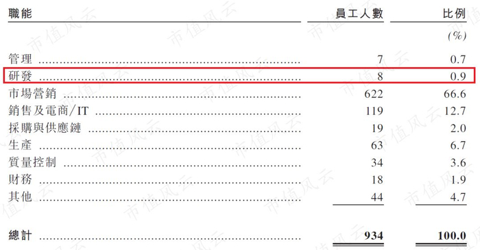 截至2018年上半年末,五谷磨房的总员工有934人,其中研发人员8人,占比0.9%。