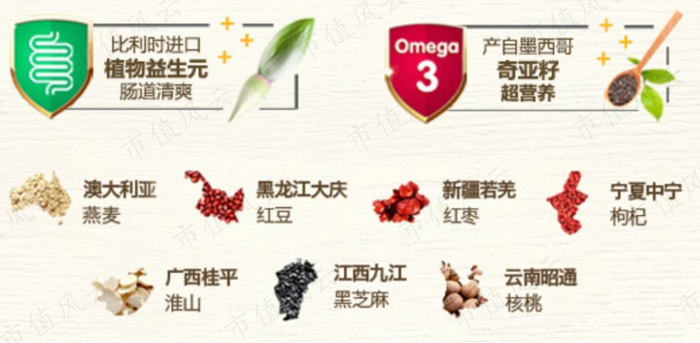 正是基于以上原因,五谷磨房会从宁夏购买枸杞、从江西鄱阳湖购买黑芝麻、从玻利维亚采购奇亚籽、从澳大利亚进口燕麦。