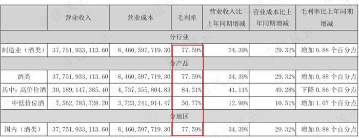 五、毛利率和五粮液不相上下