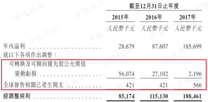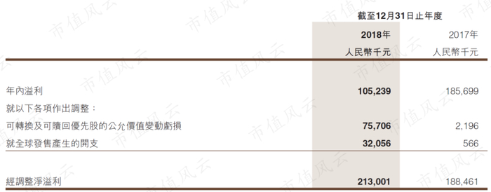 2018年净利率下降得比较厉害的原因有两个:一个是3200多万的IPO费用支出,还有一个是可转换及可赎回优先股的公允价值变动亏损,价值7500多万。