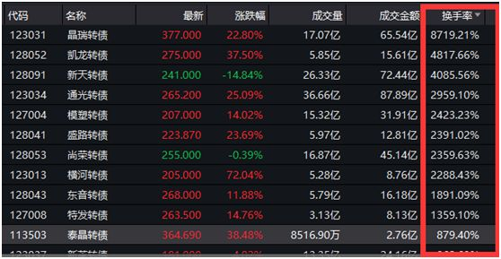 可转债二级市场惊人火爆 多只可转债换手率超1000%!