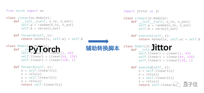 此外,为了方便更多人上手Jittor,开发团队采用了和PyTorch较为相似的模块化接口,并提供辅助转换脚本,可以将PyTorch的模型自动转换成Jittor的模型。