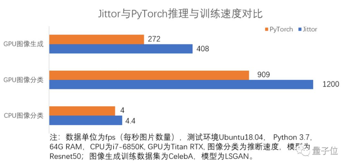 Jittor开发团队提供了实验数据。在ImageNet数据集上,使用Resnet50模型,GPU图像分类任务性能比PyTorch相比,提升32%;CPU图像分类任务提升11%。