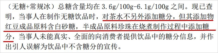 “当事人在制作无糖饮品时,对茶水不另外添加糖分,但其添加物红豆成品原料含白砂糖,半成品原料珍珠在烧煮制作过程中添加糖分”。