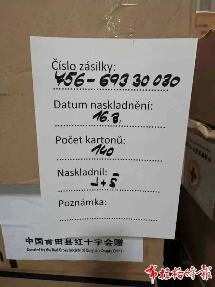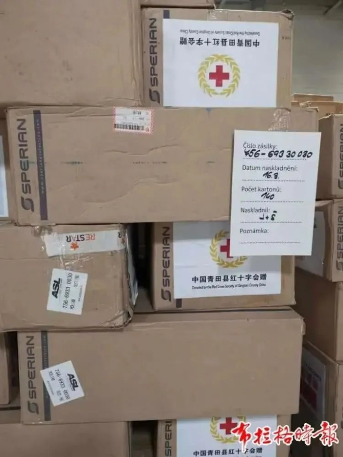 据悉,乌斯季州海关人员在对仓库进行检查时,发现了上述两批口罩。虽然青田县捐赠的口罩贴有“中国青田县红十字会赠”和“驰援意大利”的中英双语标识,但由于有关负责人没有书面材料可以证明这批10.16万只口罩是用于捐赠的,因此也被乌斯季州根据捷克的相关法律一并征用。