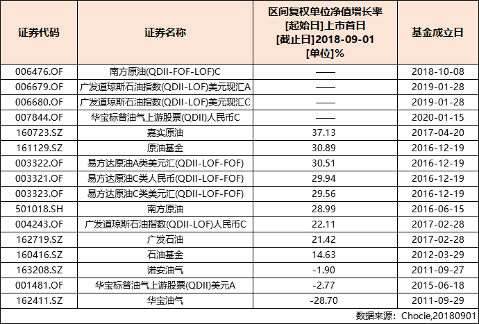 领涨的嘉实原油、易方达原油、南方原油、广发原油成立在2016年以后,