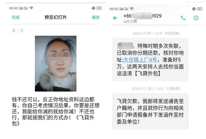 例如,3月15日,网友在黑猫投诉发帖称,由于疫情期间没有收入来源,暂时无力还款,已和客服沟通情况下,飞贷催收不停电话和短信,各种威胁恐吓,导致其身心受到伤害,要求停止此类催收,并向其道歉。