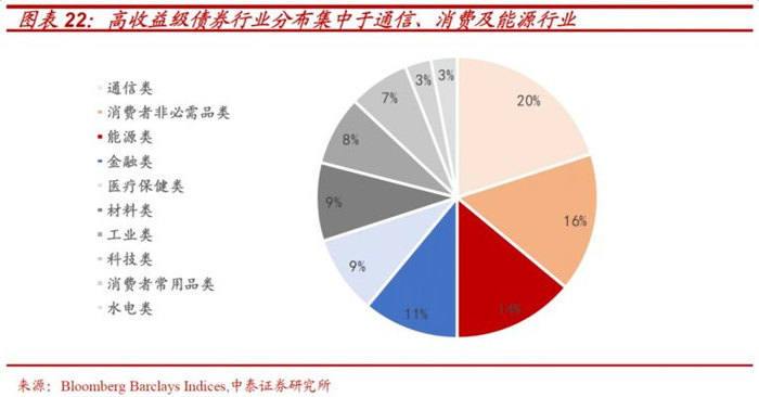从高收益债券的行业分布上看,通信、消费及能源类行业规模占比最高,分别为20%、16%及14%。而这些行业或是本轮新冠疫情下,需求遭受冲击最为明显的行业。以油气行业为例,能源高收益债规模为1421亿美元,占高收益整体的14.4%,其中,美国页岩油中上升最快的轻质致密油(LTO)每年支付的长期债务利息就超过200亿美元,这意味着,需要拿出当前产量(日产600万桶)的近一半才能支付这笔债务的利息。叠加OPEC+原油价格战的冲击,未来相关企业的债务违约风险或不容低估。