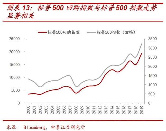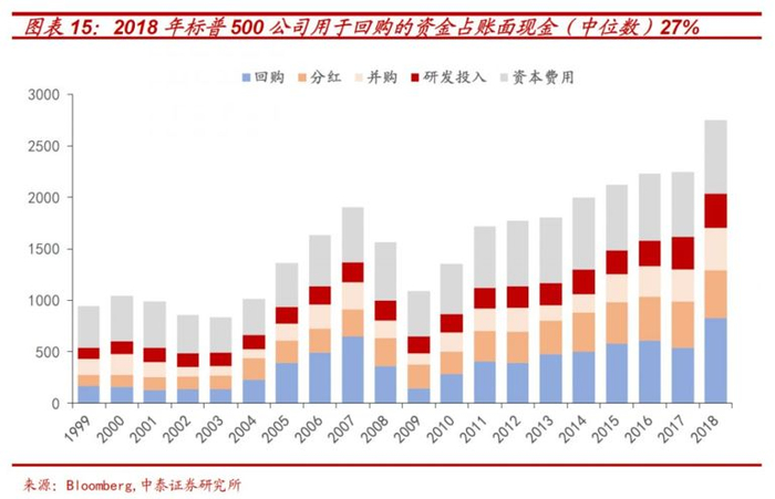 2018-19年标普500指数总回购金额总额分别达到8067亿美元、 6065亿美元,均属于历史高位水平。我们认为,一旦疫情扩散冲击需求和流通,对上市公司现金流产生压力致使上市公司开始减少或停止回购,那么美股“卸妆”后的真实盈利情况或在未来1-2个季度的财报里集中显露(近期包括摩根大通在内的,被美国监管机构认为对金融体系最重要的8家银行,因疫情影响,停止原计划1190亿美元的回购计划或是个开始)。