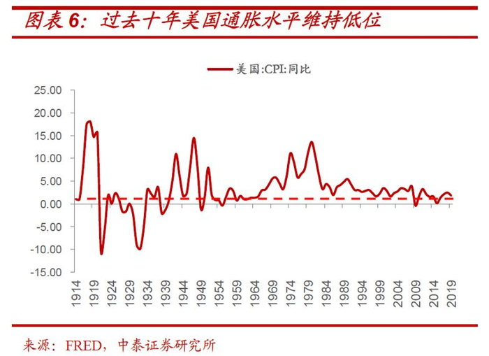需要指出的是,联储本轮在资产价格高位仍持续宽松的做法,与1929年大萧条前的宏观环境及做法有一定程度相似性。通胀率始终维持在相对低位,使得联储对债务增加推升的资产价格泡沫带来的风险容忍度增高。