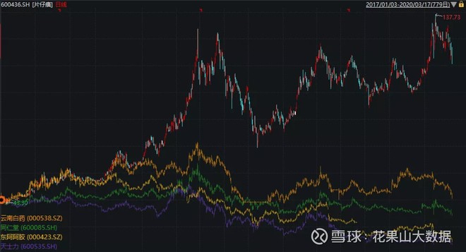 如今,曾经的“中药五虎”可谓面目全非,东 $东阿阿胶(SZ000423)$ 、天士力、同仁堂股价频频新低,早成“病猫”; $云南白药(SZ000538)$ 稍好,但股价的“精气神”比片仔癀也差得远。这种强烈的反差是由基本面硬度决定的。