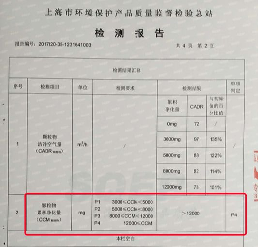 注:CCM 值有四个等级 p1、p2、p3、p4,代表的是洁净空气量,值越高,其净化的污染物就越多。
