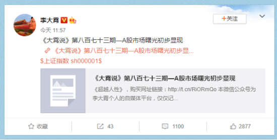 直到近期才被约谈,背后是非官方渠道监管趋严已成常态,微信公众号、微博等公开渠道已纳入监管,非法外之地。近期证监会已密切监控上市公司在互动易、微信、微博等非公开渠道发布影响公司股价波动的信息。李大霄被约谈事件如果为真,那将意味着证券分析师个人的公开言论也已纳入监管范围。