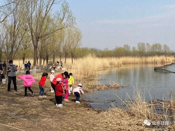 市民有的在草地上晒太阳,有的在湖边写生作画,有的陪孩子在芦苇丛边戏水,有的在拍摄早春开放的迎春、山桃花,游览秩序良好,没有出现一大群人扎堆的现象。