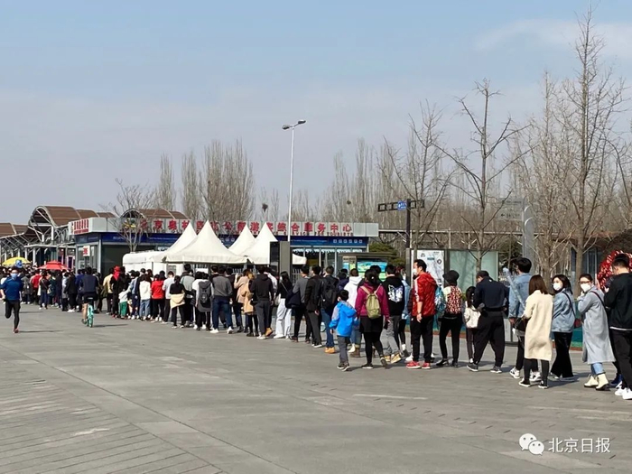 北京奥森南门排起400米长龙!疫情未过,别去大公园扎堆