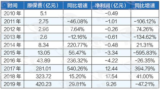 数据显示,自恒大集团2015年进入后,其保费出现了大发展。2017年,恒大人寿原保费更是从2016年43.89亿元上涨到281.01亿元,同比增长540.26%。利润方面,自2017年开始出现盈利,且到2018年盈利达到17.54亿元。2019年,恒大人寿净利润下降至9.26亿元。