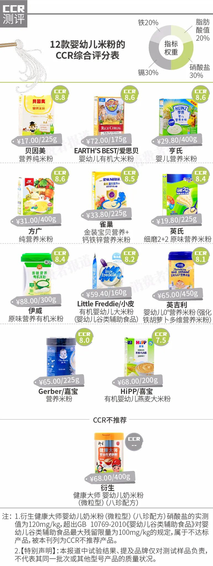 12款婴幼儿米粉对比:1款风险物超标!喜宝、爱思贝等镉含量较高