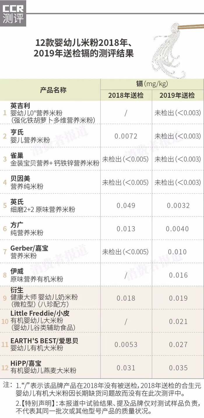 时隔一年,这些品牌的婴幼儿米粉镉含量是否有所下降?