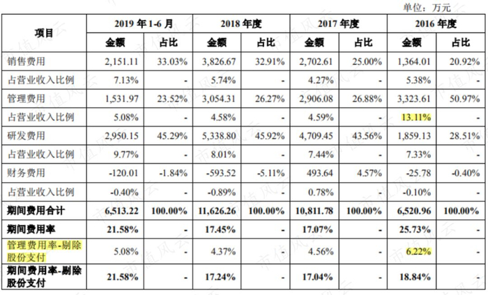2016年因股份支付,管理费用率高达13%,期间费用率较高,接近26%。剔除股份支付后的期间费用率降为19%,2017年、2018年下降至17%左右。