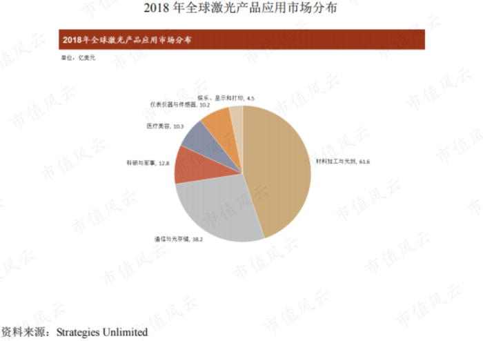 通信和光存储市场凭借38.2亿美元的激光产品销售收入,排名第二位;