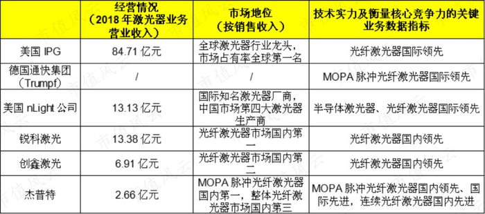 现阶段,杰普特在MOPA脉冲光纤激光器的细分领域处于国内第一,整体光纤激光器处于全国第三,收入体量与国内老大锐科激光、老二创鑫激光有一定差距。