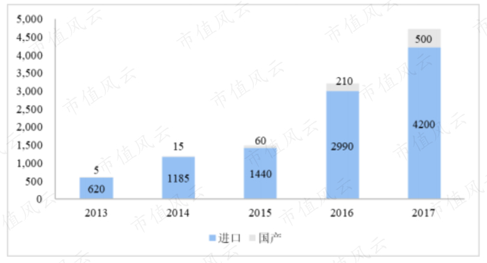( 2013-2017 高功率光纤激光器中国销售数量(台))