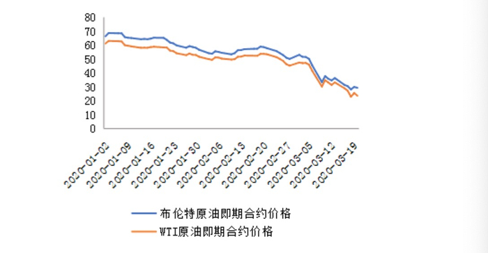 自2008年全球金融危机以来,在宽松货币政策刺激下,全球股市大幅增长,其中美国股票指数涨幅最大(见图九)。在新冠疫情的冲击下,全球股市大幅波动,自2020年年初至3月16日,美国三大股指平均累计下跌27%,疫情较严重的意大利和西班牙等欧洲市场股指累计下跌均超过30%,意大利和西班牙股市下跌超过40%,几乎回到2008年的低点。加上沙特和俄罗斯“石油价格战”影响,WTI原油和布伦特原油价格不断下挫,自2020年1月1日至3月16日,分别累计下跌53%和58%。(图九,图十)