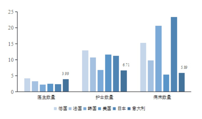 发达国家老龄化程度较高,增加易感人群比重,加剧医疗体系的负担。意大利、德国、法国和西班牙65岁以上老年人口占总人口比重分别为22.8%、21.5%、20.0%和19.4%,老龄化程度分别排名全球第2、第6、第12和第18位。老龄人口更易受新冠疫情感染,且发展为重症或死亡的概率远大于年轻群体,老龄化程度过高也是意大利死亡率高达8.2%的原因之一。易感群体比重高、发展为重症病例的概率大,这进一步加大意大利、德国等国家医疗体系的负担。