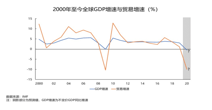 疫情将严重打击全球贸易。2019年受到中美贸易摩擦的影响,全球贸易量已经从2018年的增长3.6%下降为1.1%。我们估测今年全球贸易会大幅下滑,下降幅度会大于2008年的全球金融危机时期。2008年第四季度贸易下滑4.4%, 2009年头两个季度连续下滑14.6%和14.5%,第三季度继续下降10.6%。贸易大幅下滑主要因为金融危机严重破坏了全球贸易融资的资金链,贸易信用证量急剧下跌,致使贸易下滑。2009年全年全球贸易下降10.396%。这次疫情影响面大于2008年,冲击深度强于2008年,英国的“群体免疫”政策一出,非“群体免疫”政策国家必然采取“锁国”政策,全面切断人流、物流和贸易流。德国立即封锁边境就是一例。我们估测2020年全球贸易增长下滑将超过2008年,在-10%以下。