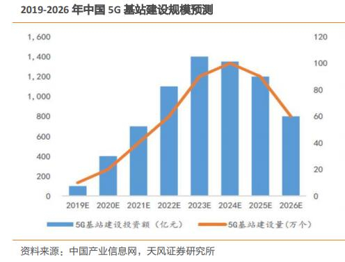 中国电信和中国联通于今年3月10日发布5G无线设备招投标计划,基站数量25万站,总金额约380亿元。