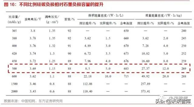 前述的成本敏感性分析表明,改善负极性能也是降低电芯制造成本的有效途径。目前商业化的锂电 池主要以石墨为负极材料,石墨的理论比容量为 372mAh·/g,而市场上的高端石墨材料已经可以 达到 360~365mAh·/g,因此基于石墨负极的锂电池能量密度优化空间相对有限。