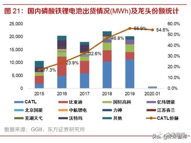 我们认为,电芯一致性的差异是过去几年国内锂电池格局迅速集中的重要原因。我国锂电池的名 义产能处于严重过剩状态,2019 年全行业产能利用率不足 30%。与此同时,龙头公司宁德时代 的市场份额却甩开同行绝尘而去,无论是政策引导的三元,还是市场认为偏低端的磷酸铁锂,宁 德时代的市占率都已达到 50%以上。考虑到磷酸铁锂电池的固有安全特性,技术难度低于三元, 而且各厂家的材料选用、结构设计乃至能量密度等性能参数均相差不大,宁德时代在铁锂领域的 全面胜出主要是凭借产品的高一致性。