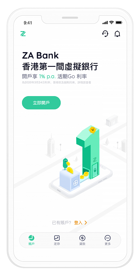 3月24日,香港众安银行有限公司宣布,自即日起正式面向全港市民提供服务,成为香港第一间正式开业的虚拟银行,并推出首款旗舰活期存款产品—— “ZA 活期Go”。