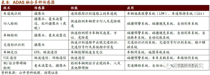 ADAS融合多种传感器,车道识别、交通标识识别以及后方障碍物检测需要摄像头、毫米波雷达连续跟踪识别道路上车道线,交通标识、交通信号;行人及车辆检测需要用到毫米波类达、红外摄像头等快速检测车辆前方行人、车辆危险程度;车辆定位需要GPS、短波通信使车辆快速定位。ADAS的应用将大幅提升传感器的需求。