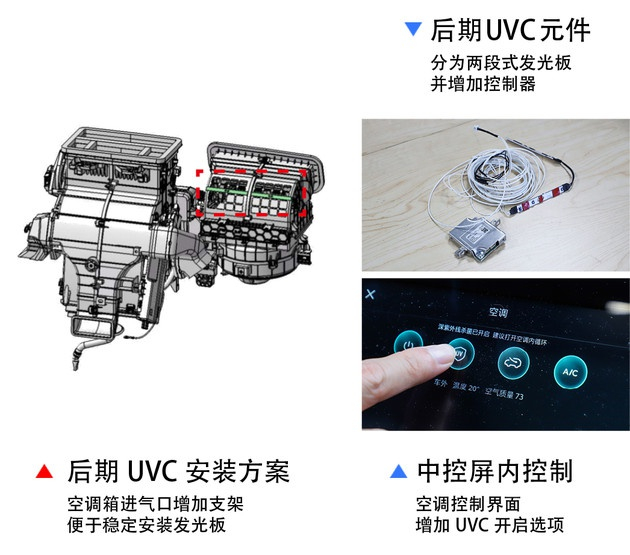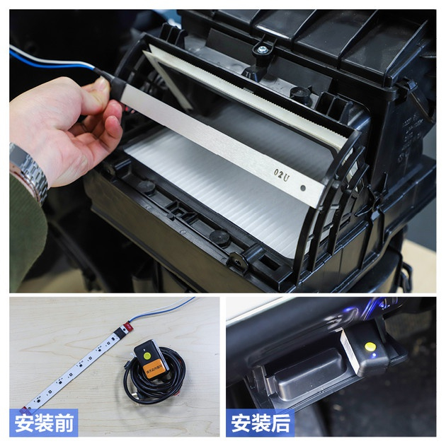 针对此次疫情,上汽荣威快速开发了藏于空调系统内的UVC深紫外线光学杀毒系统,该系统可通过照射,对附着在空调滤芯上的细菌进行杀灭。目前上汽荣威可为已经购买荣威全系车型的车主提供后期加装服务,将会在现有的空调箱进气口支架上安装一条UVC深紫外线发光板,保证光线能够充分照射在空调滤芯上,而控制线将会直接穿过发动机舱,其另一端的开关控制器则被安置在了方向盘左下方的储物盒内。由于空调系统在外循环模式下,进气口将会关闭,因此灯光无法照射到空调滤芯上;所以车主可在内循环模式下选择进行开启,开启后UVC深紫外线光学杀毒系统会在90秒的照射后自动进行关闭。目前我们从厂家售后了解到,在3月31日之前选择加装这套系统的价格为299元(免安装费)。