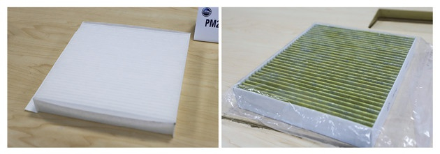 我么都知道病毒在空气中无法直接传播,必须有载体(如飞沫、接触)实现传播,而目前新冠状病毒的病毒直径约80nm~120nm,虽然一般通过飞沫传播,但是较大的飞沫,主要还是沉降到地面上;而小的飞沫液滴会被迅速干燥,由剩下的蛋白质和病原体形成飞沫核,因此实际上82%的飞沫直径在0.74~2.12um之间,这部分飞沫可以在空气中悬浮很长时间。而荣威最新推出的RX5 MAX车型搭载了上图左边的这款空调滤芯,其过滤材料由纺粘工艺的预过滤层和熔喷工艺的超细纤维层,再经过静电驻极工艺,实验条件下对0.3~5um颗粒的过滤效率可达95%以上。而购买了荣威RX5 MAX的车主也可在后期选择更换上图右边的滤芯,该滤芯的过滤效率与原厂滤芯相同,但增加了抗过敏源。