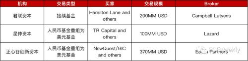 TR Capital重组了昆仲资本的部分人民币基金资产,涉及7个投资项目,金额约1亿美元,此类交易为GP和LP都带来了新思路:对LP来说二手基金份额或者基金重组为需要流动性的LP在常规投资期结束前就提早带来了现金回报,而对人民币GP来说,也为其首只美元基金的募集带来了新方法。无独有偶,之前新加坡的GIC联合新程资本对正心谷创新资本的重组,也是类似昆仲的双币切换操作(尽管所涉及的资产整体上比昆仲要较为后期)。
