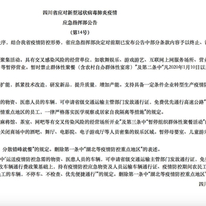 此外,四川省疫情应急指挥部一名工作人员告诉新京报记者,四川疫情防控应急响应级别已经由二级调整为三级,“恢复娱乐场所没有问题。三级响应后,指挥权限在地市州的指挥部,各级政府会制定具体细则。”