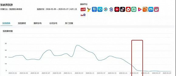 Dataeye监测到,旅游类广告的投放在春节前“归零 ”