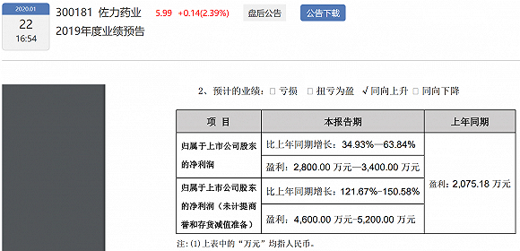回顾佐力药业2019年业绩预告,公司预测归属于上市公司股东净利润为2800万元-2300万元,归属于上市公司股东的净利润(未计提商誉和存货减值准备)为4600万元-5200万元。