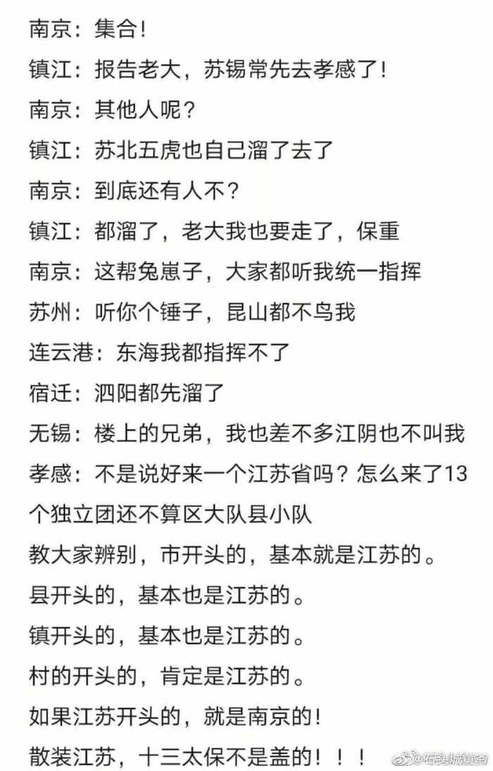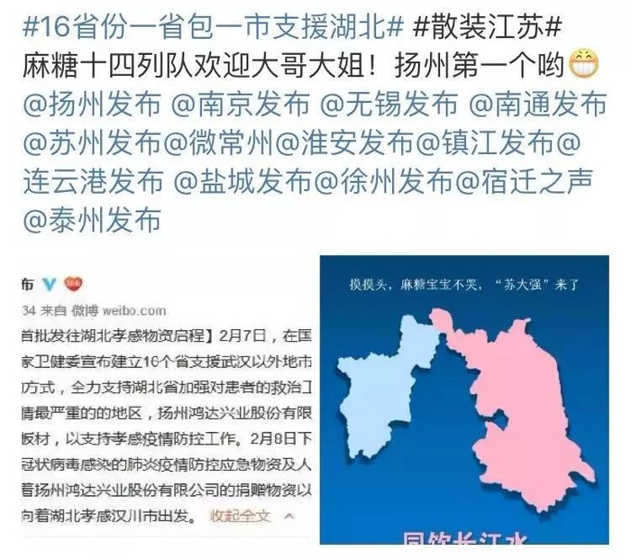 不过,网络上也出现了许多关于“散装江苏”的调侃:江苏各地医疗队集结迅速,很多队伍都是以各市、各县、各院为阵... ... 这其中有网友打趣、夸大的成分,但“散装江苏”的头衔无疑在全国又火了一把。