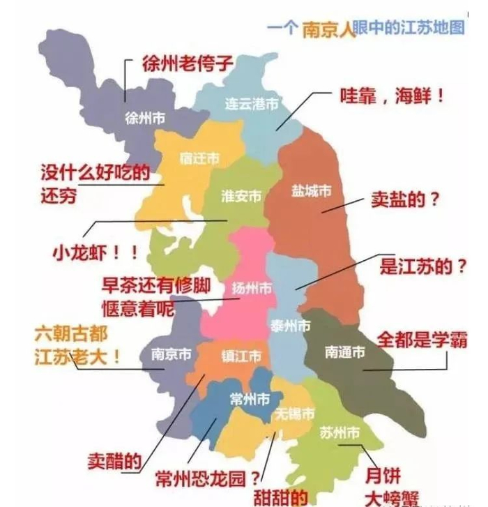 “散装江苏”成网红绝非偶然,这可是有“悠久传统”的,很多江苏人也以此为乐,甚至以此为荣。毕竟,很久以前,就有“江苏各市眼中的其他城市”这样的帖子广为流传。