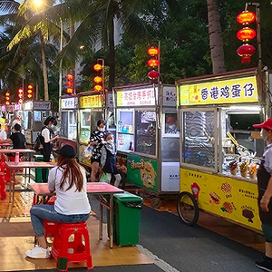 这条受疫情影响人流稀疏的街道顿时忙碌热闹起来,不到15分钟,摊主们一切都准备就绪,从清补凉、炸炸、各类糖水到长沙臭豆腐甚至重庆麻辣烫成都钵钵鸡,凡是你所能想到的小吃,这里应有尽有……随着吃货主力们的到来,往日的烟火气逐步恢复,海口城市的夜经济也开始复苏,焕发出活力。