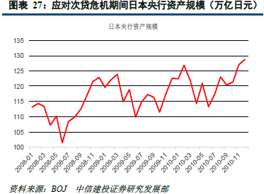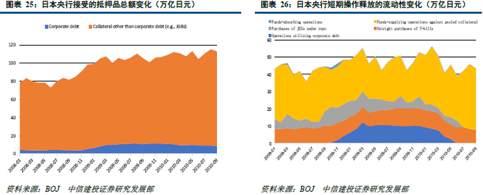市场操作:2008年10月-2010年,为稳定金融市场、促进企业融资,日本央行变革多项市场操作方式向市场提供大量资金。截至2010年末,日本央行资产规模达到123.89万亿日元,相比2008年9月增长16.18万亿日元。存款准备金利率:在危机期间央行准备释放大量流动性维护金融市场稳定,为了避免流动性快速扩大后短期目标利率急剧下降,日本央行在2008年10月引入补充存款便利工具,将超额准备金利率设定为0.1%,完善了利率走廊下限的调控。