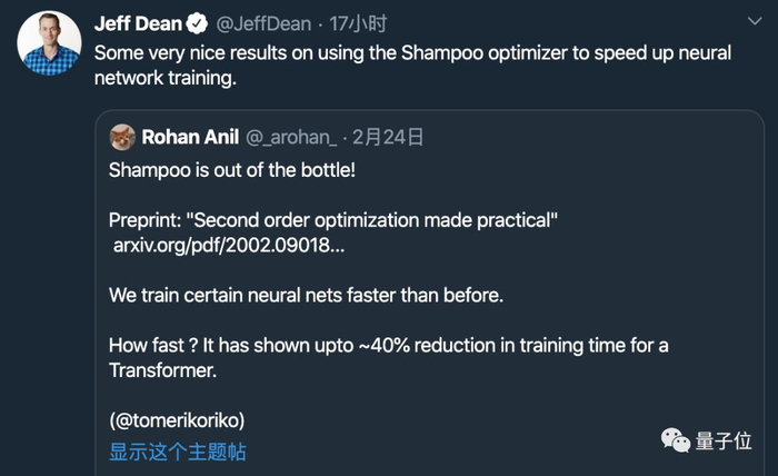 谷歌大脑提出“洗发水”二阶优化算法,Transformer训练时间减少40%,Jeff Dean点赞