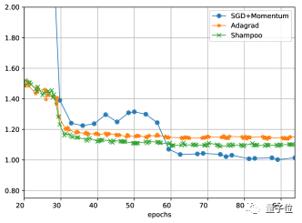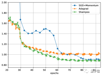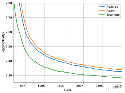 洗发水算法在和Adam或AdaGrad精度相同的情况下,只需后两者实现了约一半的相同的精度AdaGrad或亚当许多步骤,而且对学习率的宽容度比AdaGrad高。