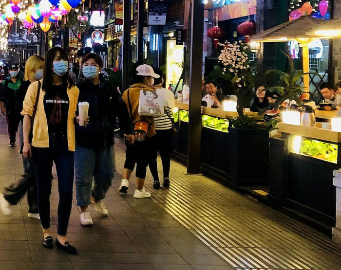在成都春熙路步行街的入口,一名佩戴红外线测温头盔的工作人员正对进出行人进行体温检测。记者看到,头盔可对前方5米范围内人员进行扫描,自动显示体温。成都IFS则采取了全覆盖、无间断的防疫措施,涉及整体环境、公共服务、定时消毒、物资配套、员工防护、顾客与租户安全等多方面。