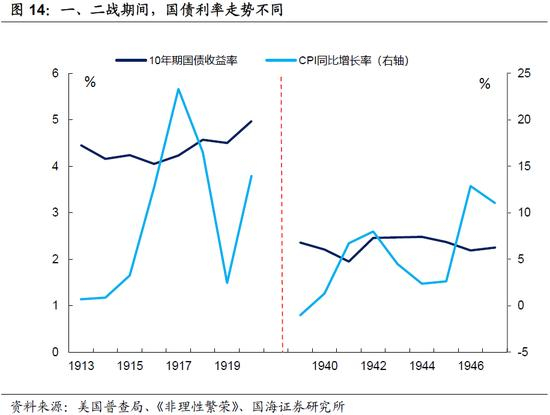 两次世界大战期间,美国国债利率表现出不同的走势: