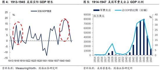第一次世界大战与第二次世界大战期间,美国GDP增长迅猛,其经济驱动模式非常的相似。